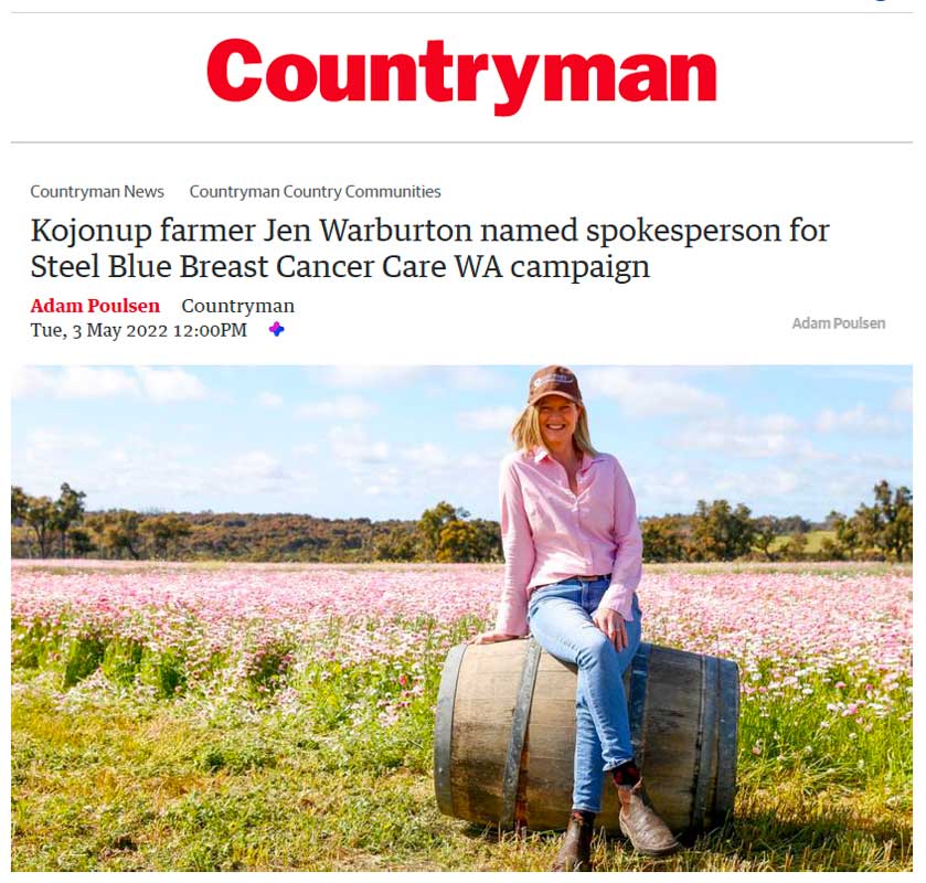 Countryman – Kojonup farmer Jen Warburton named spokesperson forSteel Blue Breast Cancer Care WA campaign